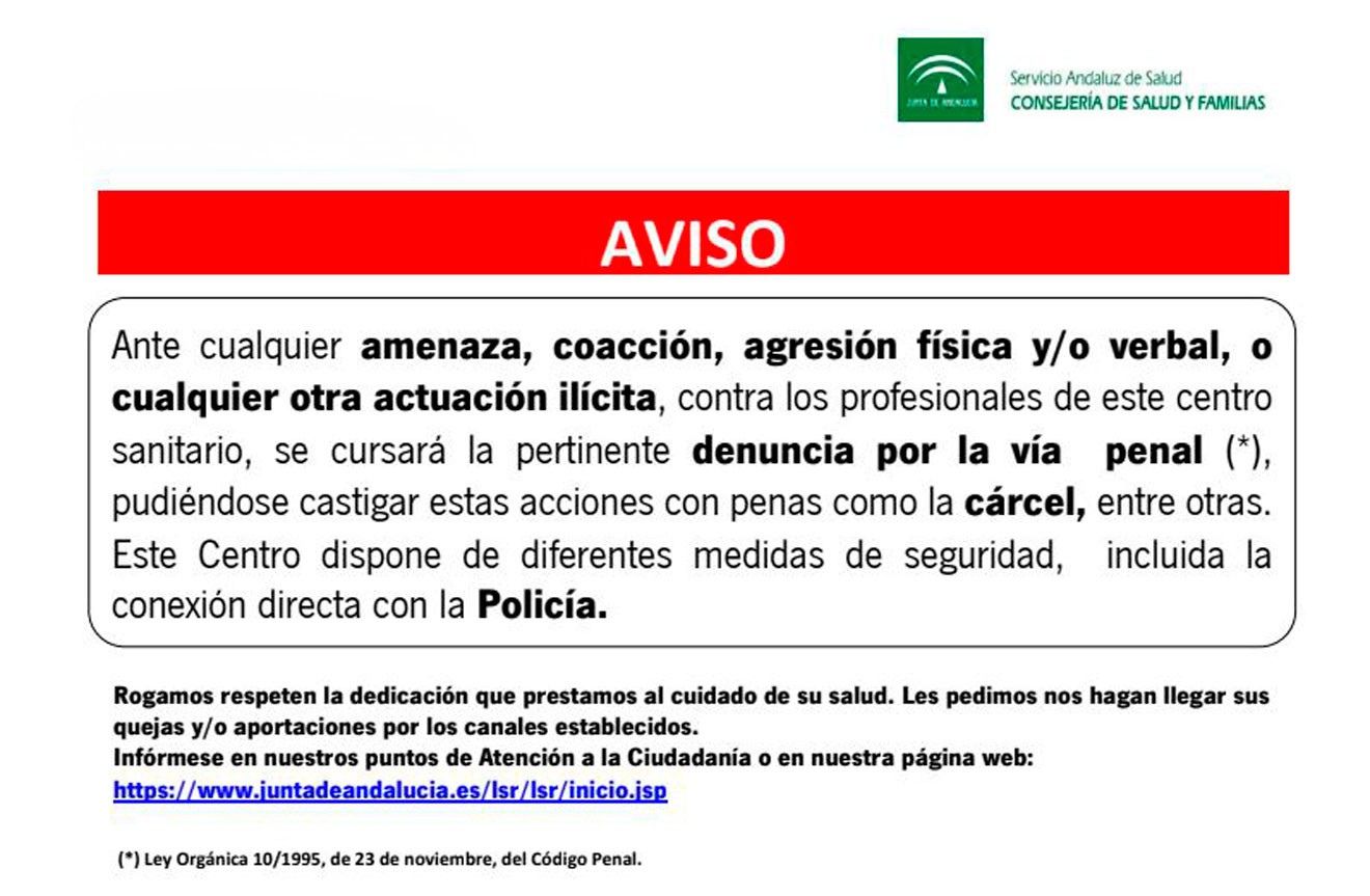 Y por otro lado, reiteramos a las autoridades competentes que tomen la capacidad de poder denunciar de oficio este y otros casos de agresiones a médicos; así como animamos a todos los profesionales sanitarios que sean objeto de una agresión a denunciar para no silenciar un problema evidente. En todos los centros sanitarios de Andalucía existen carteles informativos sobre los trámites a seguir ante amenazas, coacciones, agresiones físicas y/o verbales, o cualquier otra actuación ilícita contra profesionales sanitarios.