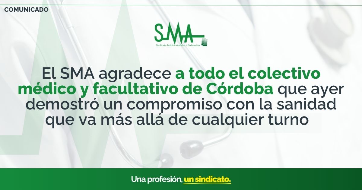 El Sindicato Médico Andaluz quiere agradecer a todos los profesionales médicos y facultativos de Córdoba que tras el grave accidente de tren han vuelto a demostrar su compromiso inquebrantable con la sanidad pública, acudiendo de inmediato al Hospital Reina Sofía para atender a las víctimas.