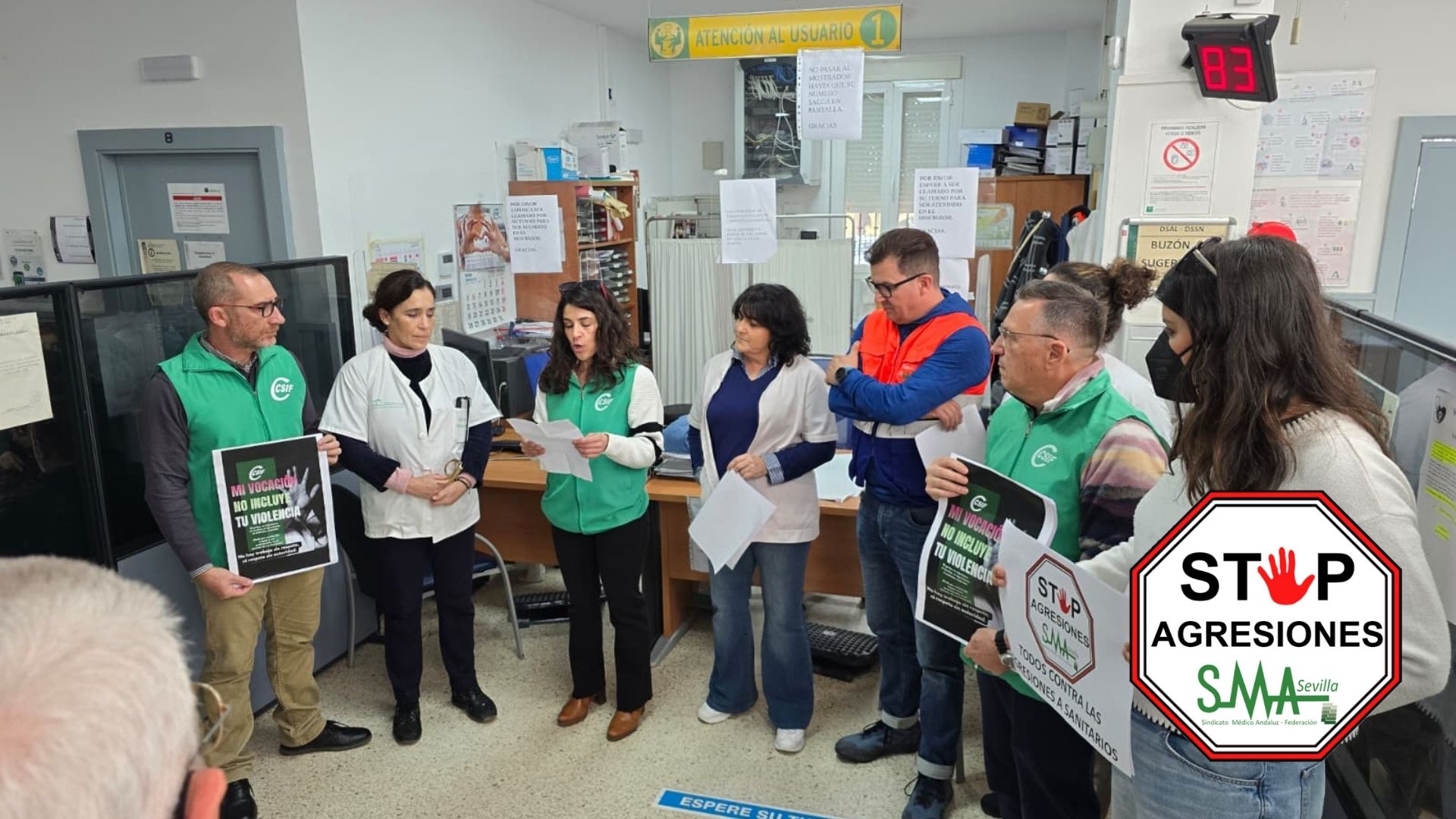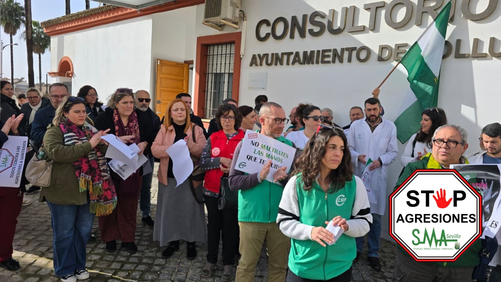El Sindicato Médico de Sevilla ha participado, junto a otras organizaciones sindicales, en la concentración en protesta a la agresión mediante pintadas amenazantes que han sufrido el grupo de administrativas del Servicio de Atención al Usuarios del Consultorio de Bollullos de la Mitación.